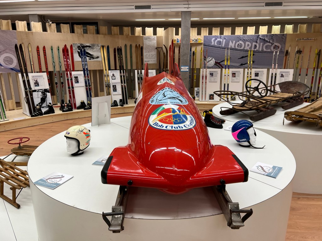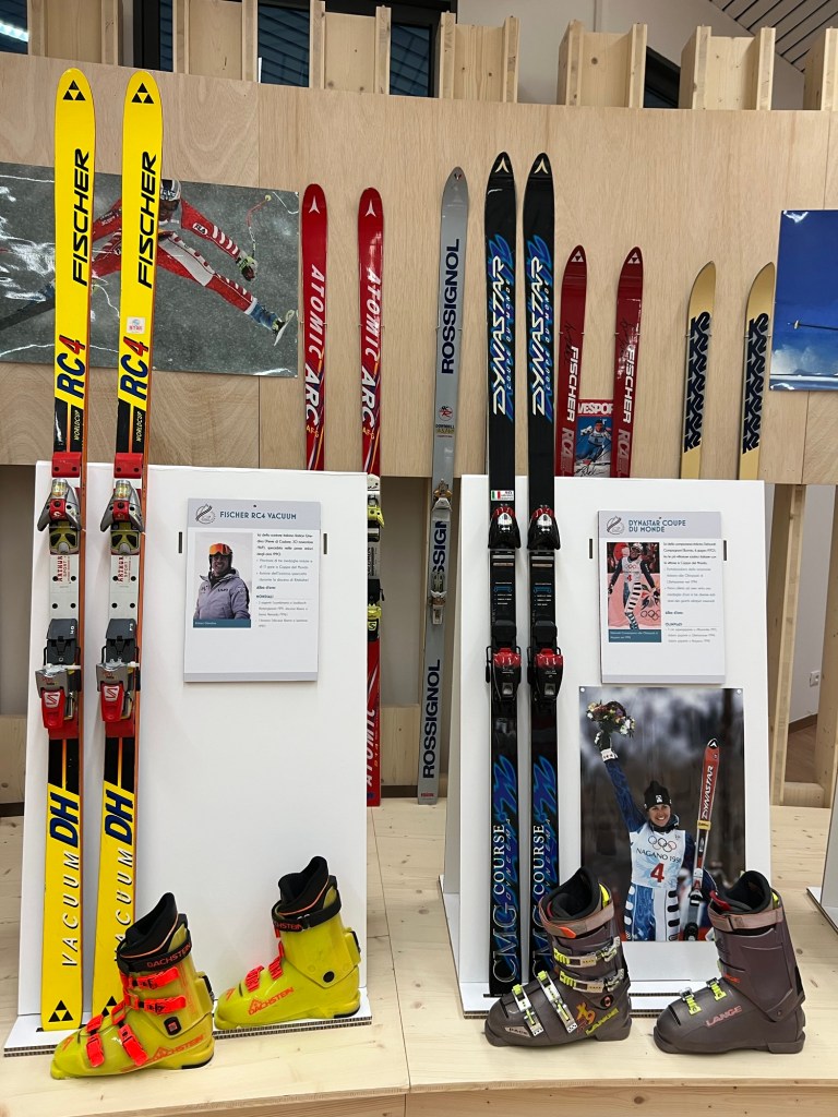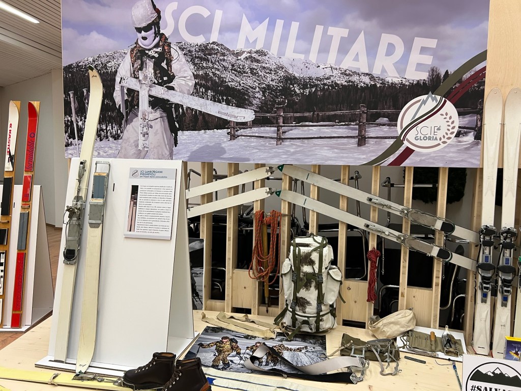 L’allestimento ha proposto un percorso che abbracciava sci alpino, sci di fondo, bob e slittino, sci militare, mostrando come la tecnica e i materiali abbiano accompagnato le imprese sportive di oltre un secolo.