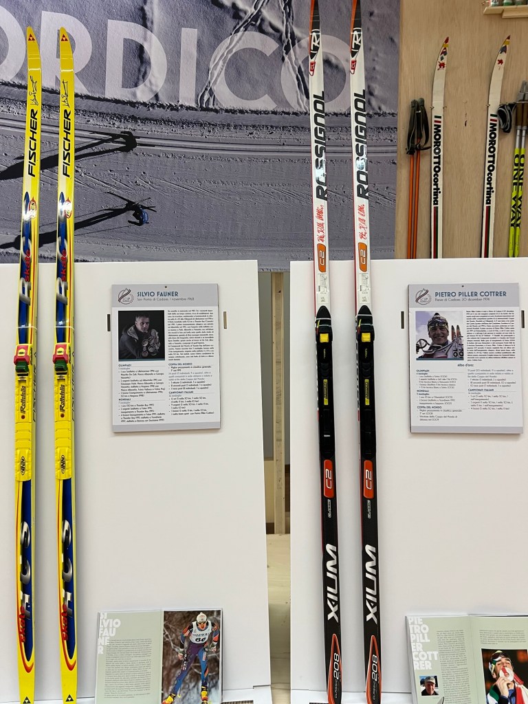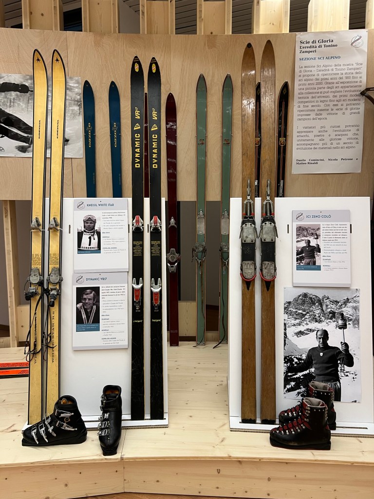 La sezione espone sci e scarponi di tante glorie: Debora Compagnoni, Alberto Tomba, Kristian Ghedina, Gustav Thoeni, Zeno Colò’, per citarne alcuni, permettendo di apprezzare differenze di tecnologia e di tecnica.