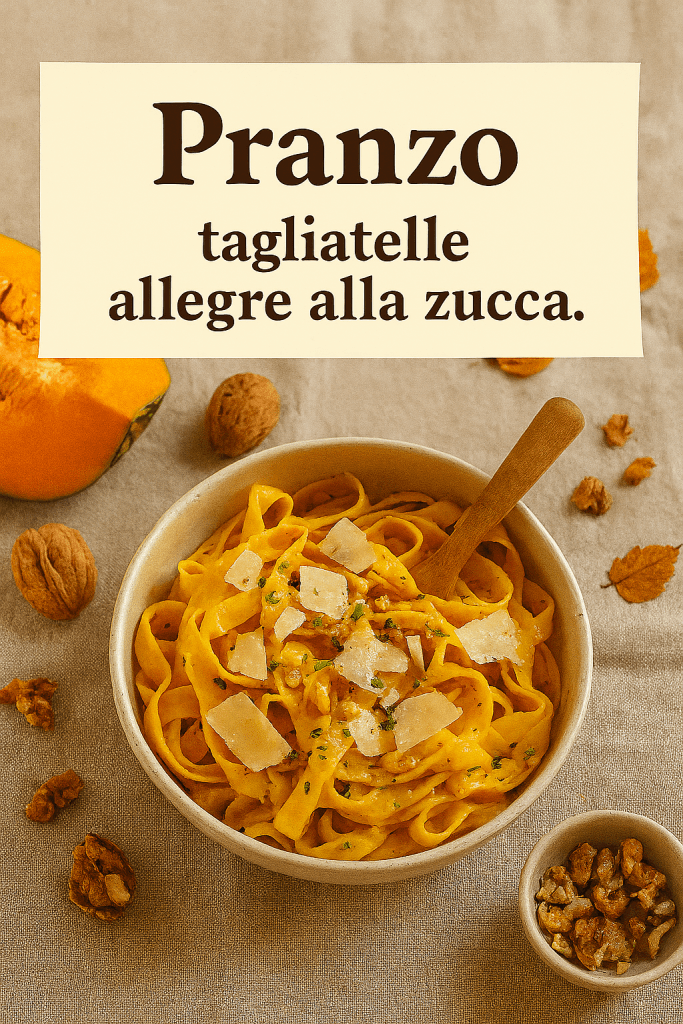 4) Manteca: Versa le tagliatelle nella padella con la zucca, aggiungi il parmigiano, le noci tostate spezzettate e un po’ di acqua di cottura. Mescola bene finché il condimento avvolge la pasta.